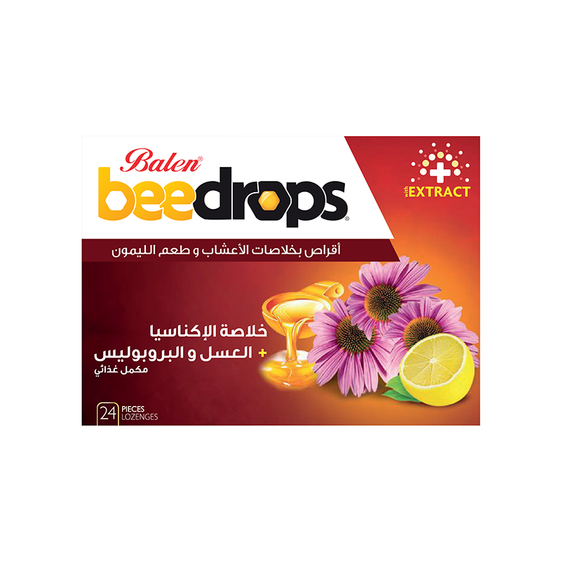 Beedrops Lemon Flavored Herbal Lozenges offer fast relief for sore throats. It contains zesty taste of lemon and enhanced effectiveness with echinacea, honey and propolis.